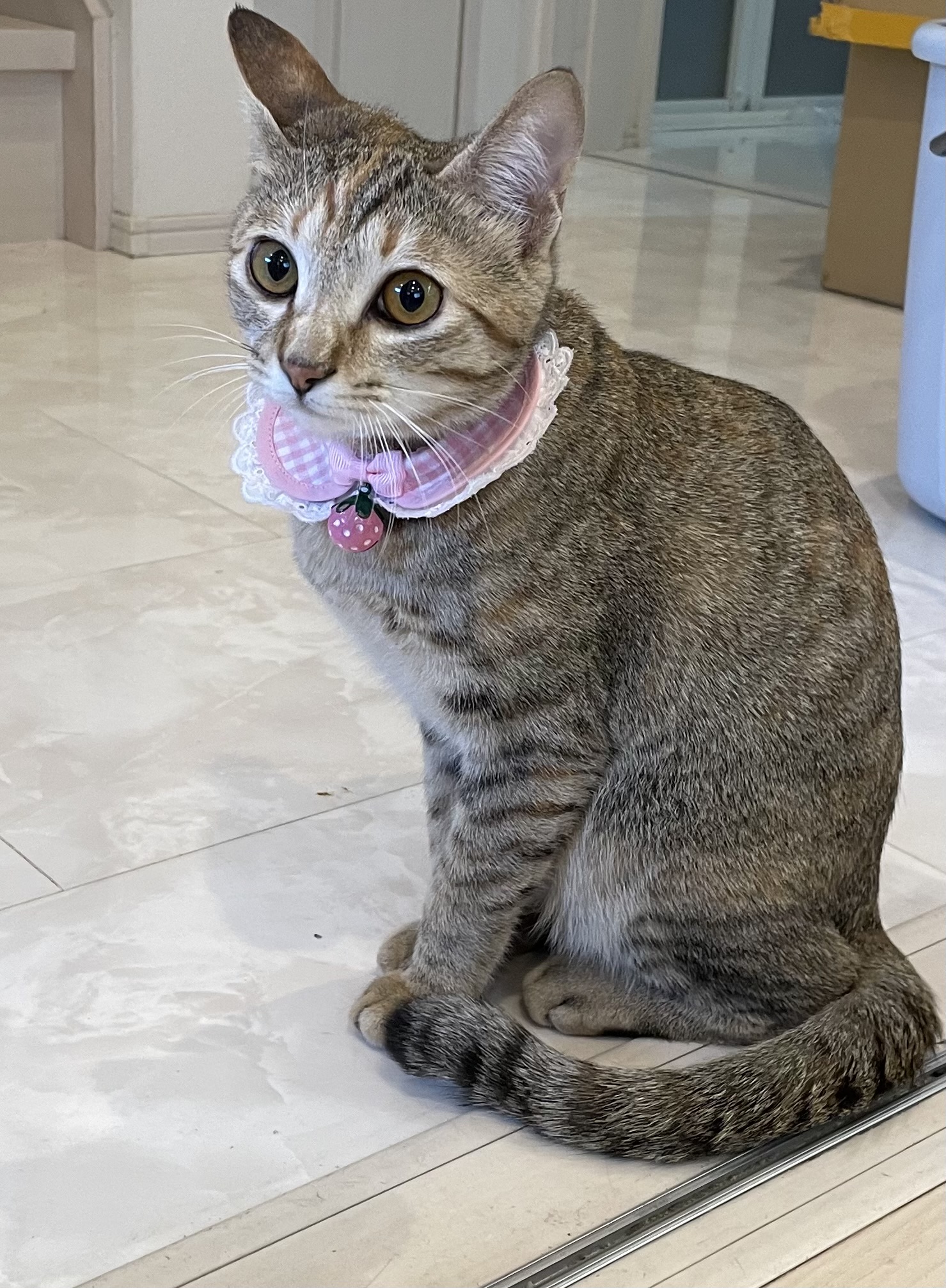 首輪 有 (ピンク色 レース付きのチェックの襟)