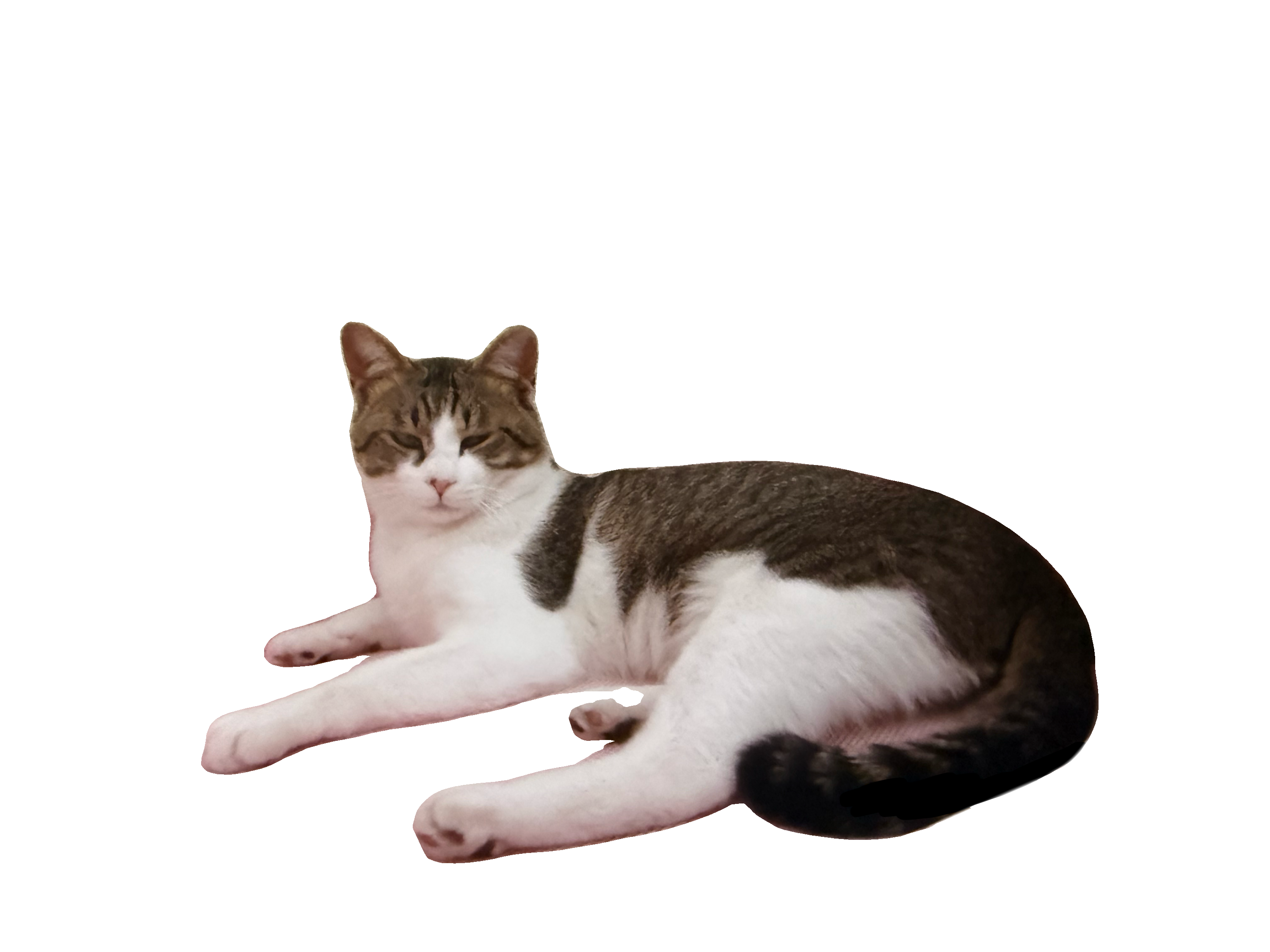 首周りと両手足が白く、尻尾は長いです。