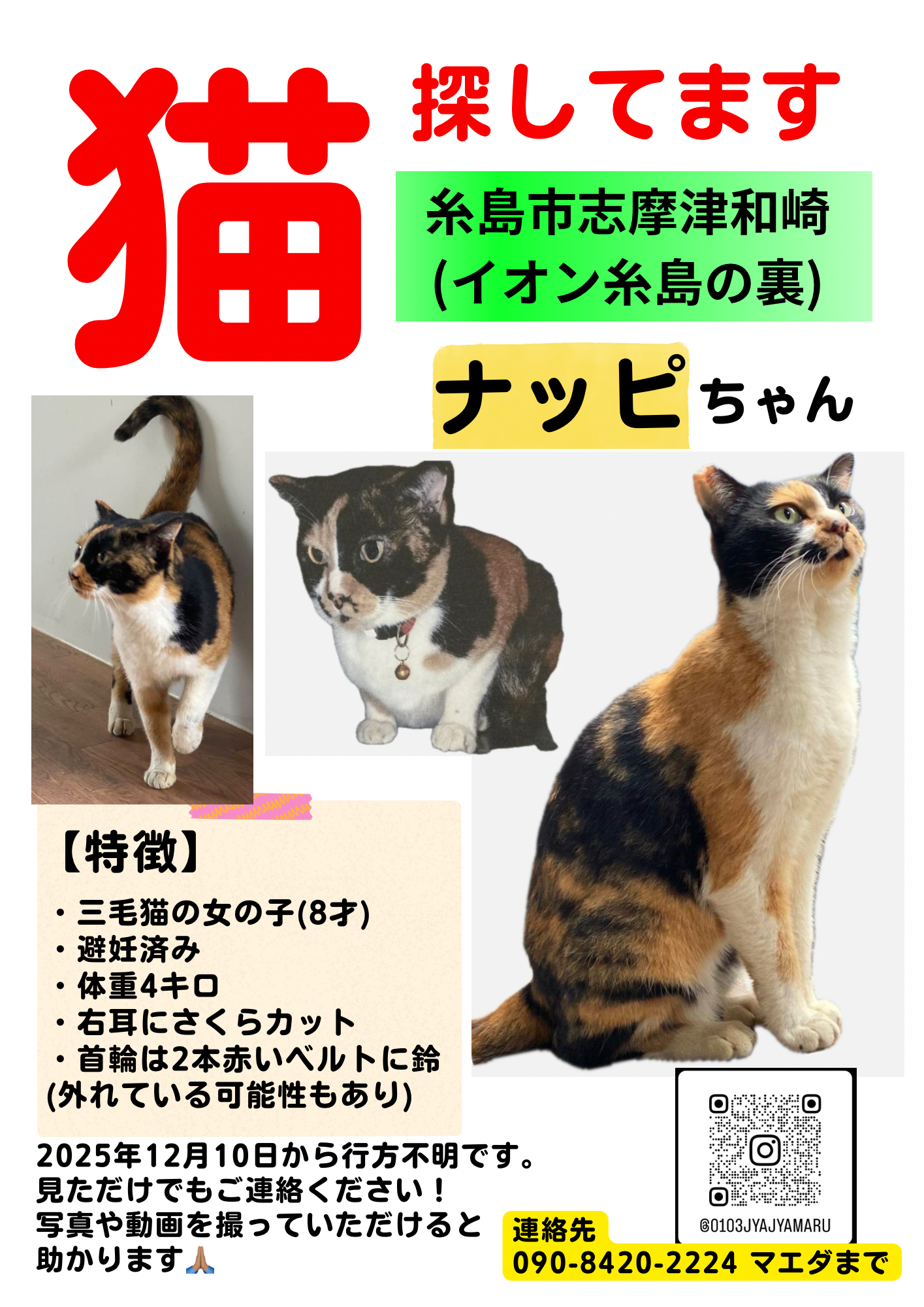 | 毛色 | 三毛猫 |