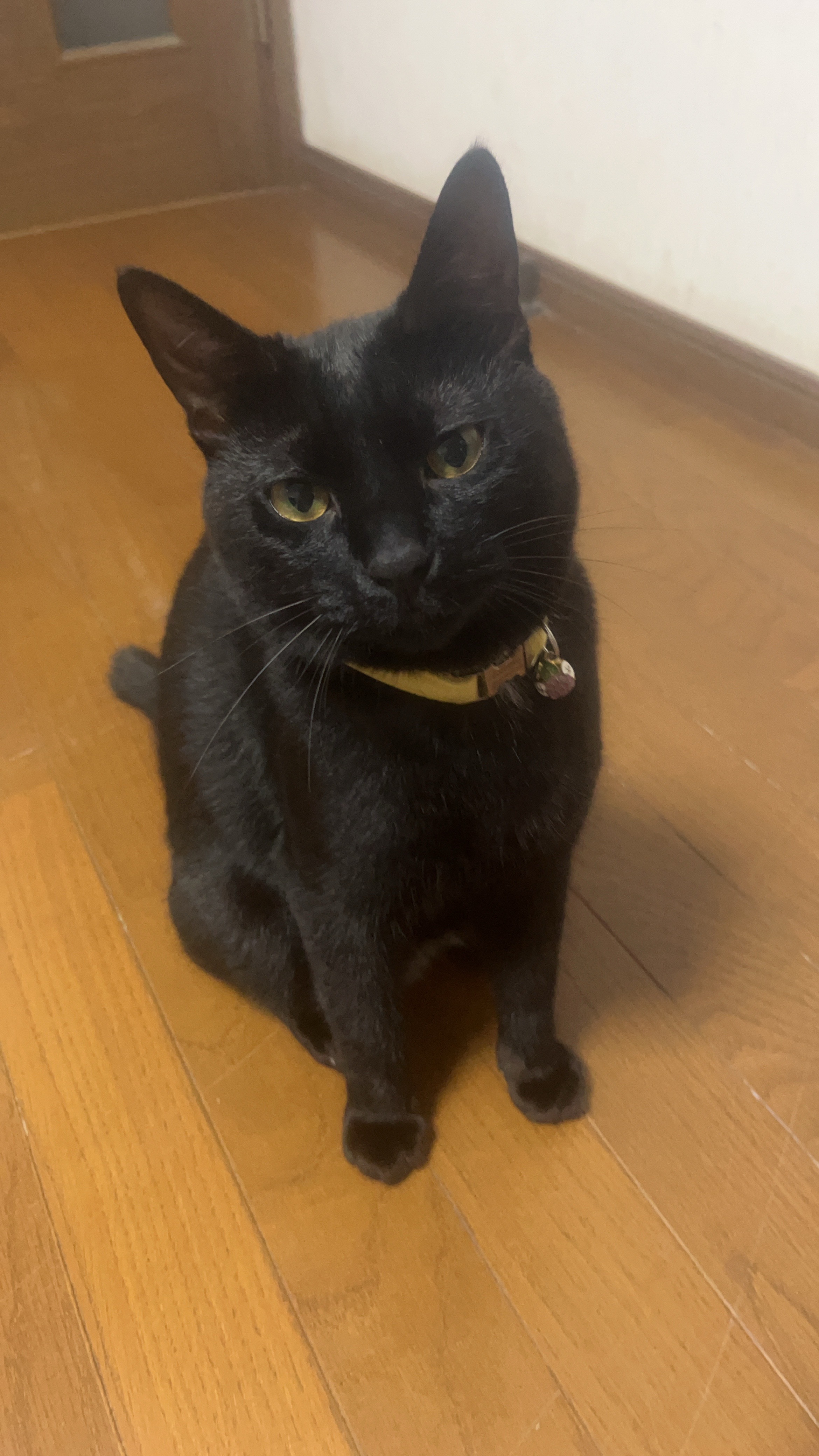 名前は、ヤマトです。黒猫です。首、お腹、左足に、白の毛が、あります。すごく人懐っこいです。名前よんだら、返事してくれます。
